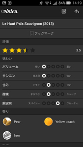 • 飲んだワインの≪味わい≫≪香り≫≪評価≫などを記録できる