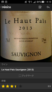 ◆スマートフォンのカメラでワインのラベル・エチケットを撮影すると、しばらくの間、自動照合が行われる。 ◆そんな間にワインを飲んでみての評価や味わいを記録していきます vinicaワインデータ画面01 vinicaワインデータ画面02   ◆特に香りは、ワインで主に表現される柑橘系や果実系、鉄などがアイコンで選択できるので、 より直感的に記録することができます。さらに自分の感想などコメントも書くことができます。 そうした内容はVinicaで共有されていて、他のメンバーからのイイね!ももらえます。 vinicaワインデータ画面03   ◆撮影して登録できる写真は、<ラベル>だけでなく<裏ラベル>や<ボトル>、グラスに注いだ時の色や濃さなどが参考になる<グラス>、食べた<料理>なども登録できるのはワイン好きには嬉しい限り。 こうした日々のワインライフを記録として残していくことができるんです。 vinica写真画面01 vinica個人ワイン画面   ◆さらに・・・ワイン名や生産者、地域、ワインの特長などを入力すると、 データーからワインを検索することもできるので、欲しいワインや好みのワイン、 飲みたいワインなどもこのVinicaで情報がゲットできる。 vinica検索画面02 Vinica検索画面01